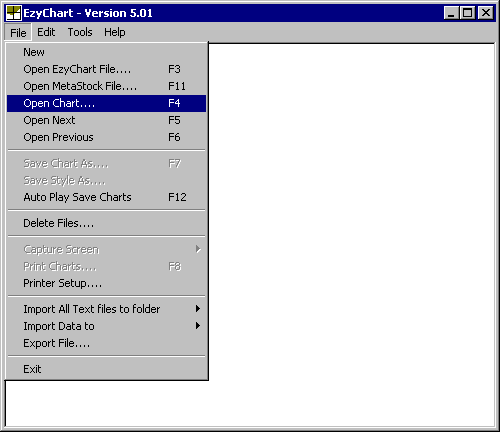 Load Ezy Charts, click on the File Menu and then Open Metastock File…