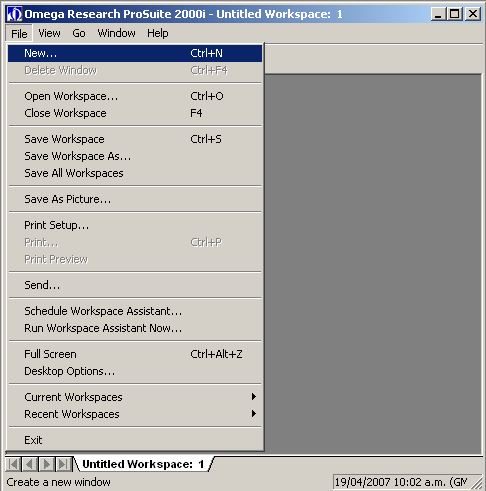 Launch TradeStation and click on File -> New.