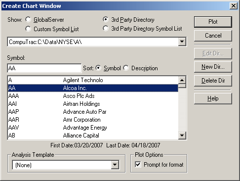 In the drop down box select where the data is located on your computer eg. C:\Data\NYSE\A\.